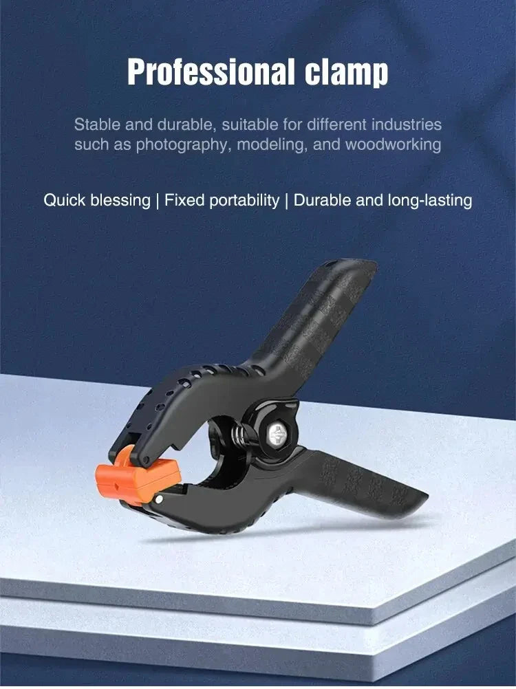 Secure and hold with ease using our 6-piece set of 3-inch spring clamps. These heavy-duty plastic clamps provide a strong grip for all your projects. Save time and effort with their quick and convenient setup. Perfect for woodworking, crafting, and more. Get your hands on these versatile clamps today!